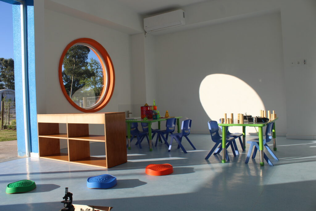 El edificio está especialmente adaptado para responder a las exigencias de una educación integral, que supone el apoyo afectivo, la estimulación temprana y las vivencias que van a determinar el desarrollo de un niño feliz y un adulto pleno.
